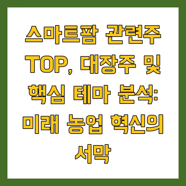 스마트팜 관련주 TOP, 대장주 및 핵심 테마 분석: 미래 농업 혁신의 서막