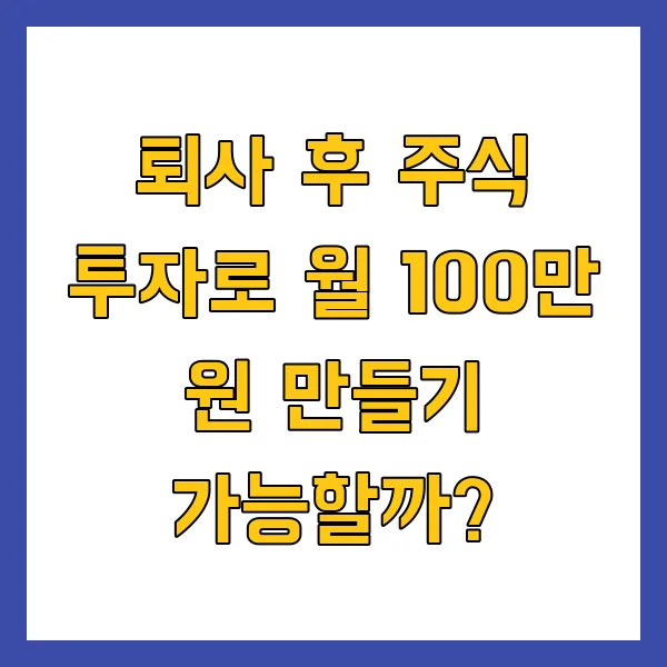 이 글에서는 퇴사 후 주식 투자로 월 100만 원을 만드는 것이 과연 현실적인 목표인지 꼼꼼하게 따져보고, 성공 가능성을 높이기 위한 구체적인 방법들을 제시합니다. 당신의 성공적인 '퇴테크'를 위한 가이드가 될 수 있도록, 핵심 정보들을 알기 쉽게 풀어 설명하겠습니다.